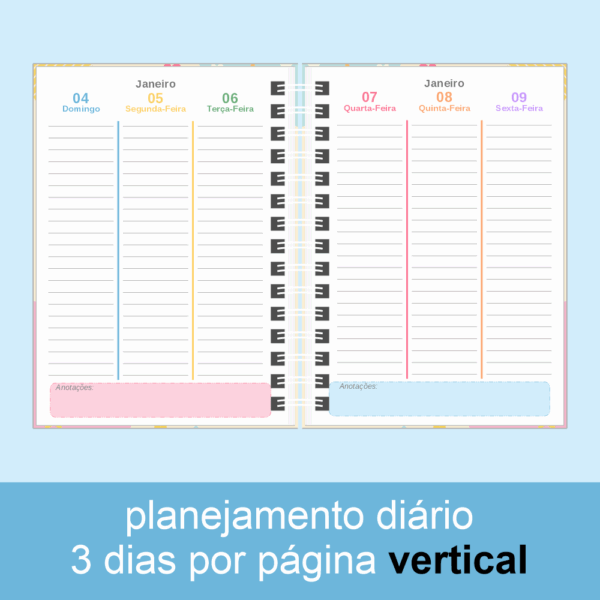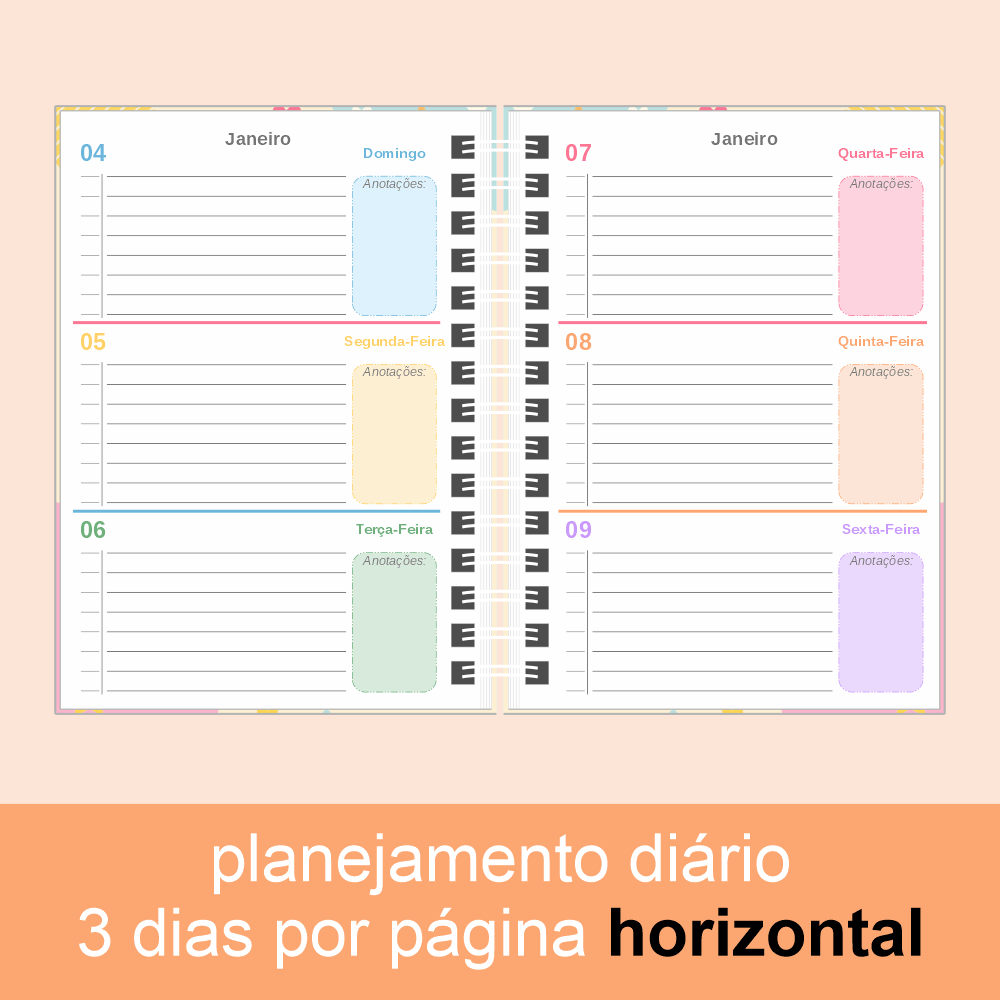 144 (3 dias por página – Impressão do miolo colorido em papel de 90g/m².).