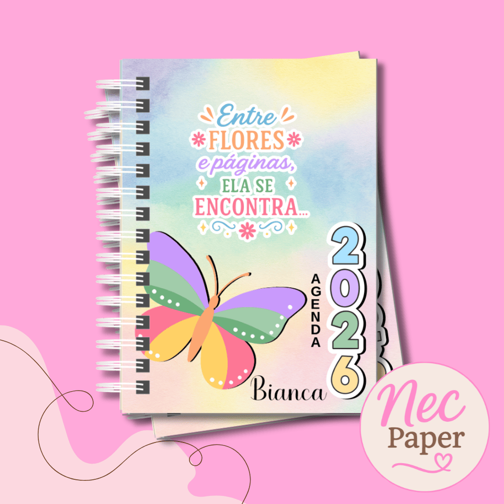 A Agenda Bianca 2026 é como um jardim em movimento — delicada, vibrante e cheia de vida. A capa em aquarela pastel transmite suavidade e leveza, enquanto a borboleta colorida representa transformação, liberdade e beleza em constante evolução. É uma agenda que convida ao florescimento pessoal, dia após dia.