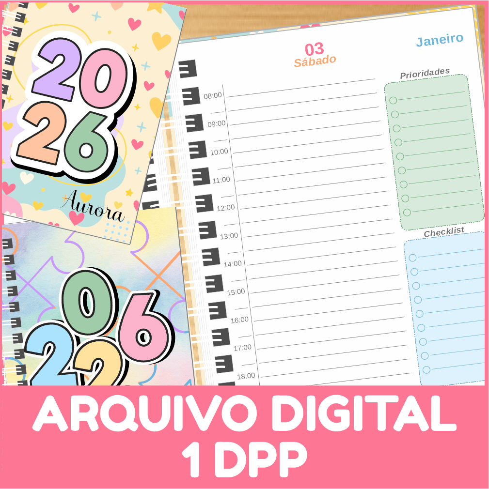 O arquivo digital: Agendas 2026 – 1 Dia por Página é composto por: