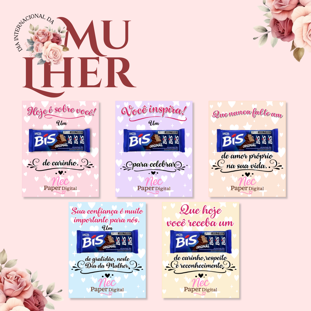 ✔ Layout com espaço central para fixação do chocolate BIS