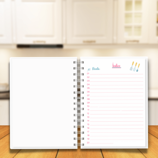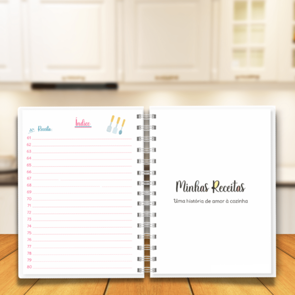 Arquivo Digital para confecção de Caderno de Receitas com índice e folhas para 80 receitas.